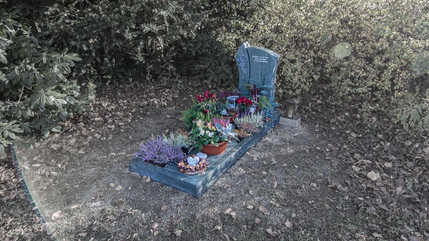 an einen Menschen schwinden rasch. Das Grab ist ein Ort der Erinnerung, des Bewahrens, der Liebe und der Hoffnung. Das Grab eines lieben Menschen ist der Ort der Trauer für die Angehörigen. Das Grab aber gibt uns die Chance den Schmerz zu überwinden.